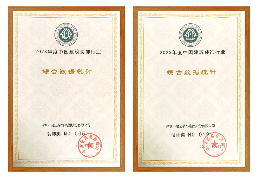 会上,中国建筑装饰协会权威发布《2023年度中国建筑装饰协会行业综合数据统计结果》,建艺集团凭借行业领域内过硬的专业实力和优质的项目工程,自2011年以来连续13年入围中国建筑装饰行业百强前十名,今年继续荣登装饰类榜单第5名、设计类榜单晋升至第19名。
