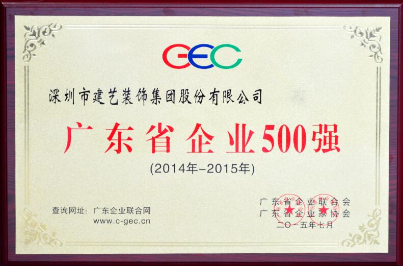 由广东省企业联合会、广东省企业家协会等主办的“2015年广东省企业500强、优秀自主品牌发布大会暨广东省企业发展高峰论坛”,7月31日上午在广州市白云国际会议中心广东大会堂举行。本次活动发布了2015年广东省企业500强及行业100强等名单,深圳市建艺装饰集团股份有限公司再次获评2015年广东省企业500强,集团行政管理中心总监赵纣瑜代表公司出席会议并领奖。