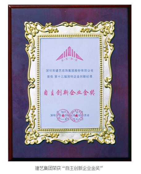 建艺集团荣获“第十三届深圳企业创新记录自主创新企业金奖”