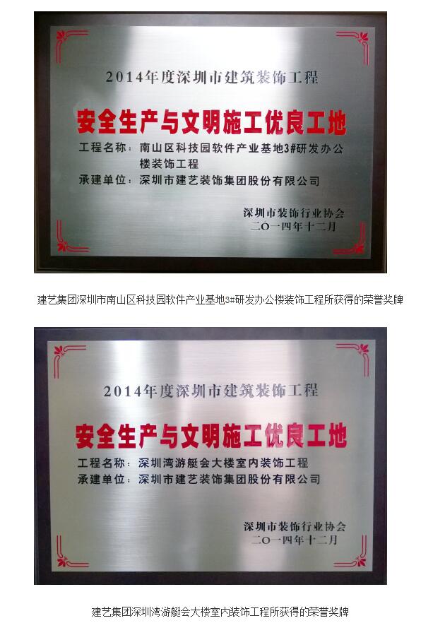 建艺集团两项工程获评“2014年度深圳市安全生产与文明施工优良工地”