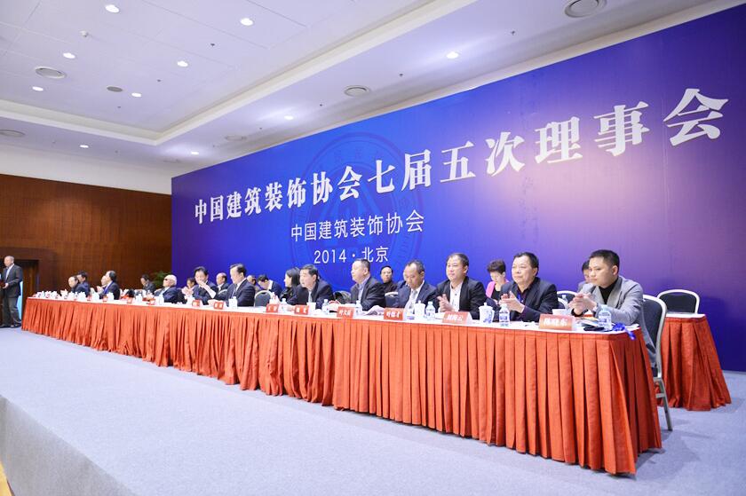 2014年12月11日,中国建筑装饰协会七届五次理事会于北京国家会议中心顺利闭幕,中国建筑装饰协会刘晓一副会长兼秘书长作2014年协会秘书处工作报告。会议顺利通过了《关于调整、增补中国建筑装饰协会七届理事会理事、常务理事部分组成人员的提案》、《关于成立中国建筑装饰协会地产分会的提案》等相关提案。