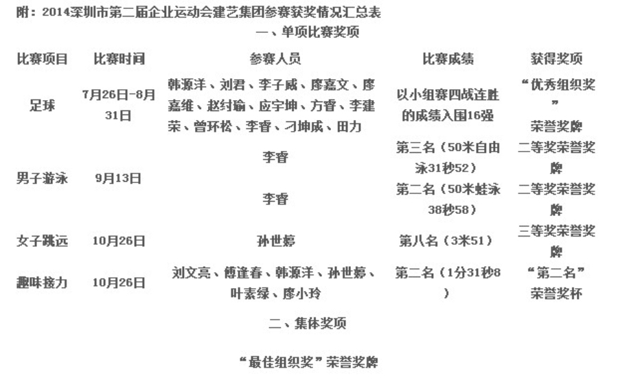 亮丽方阵独具建艺魅力,英姿勃发尽展企业风采。难忘的企业运动会虽然已经落下帷幕,但建艺人在体育竞技及企业风采展示方面的锐意前行,却并未停下脚步,而是愈发执着与自信,愈发坚定而团结。在这次深圳市建市以来最大规模的企业运动会上,建艺人用行动证明了自己,相信在未来,建艺人在各类文化体育盛会上,会有更加优异的表现。让我们拭目以待,期待着建艺集团再一次的精彩!