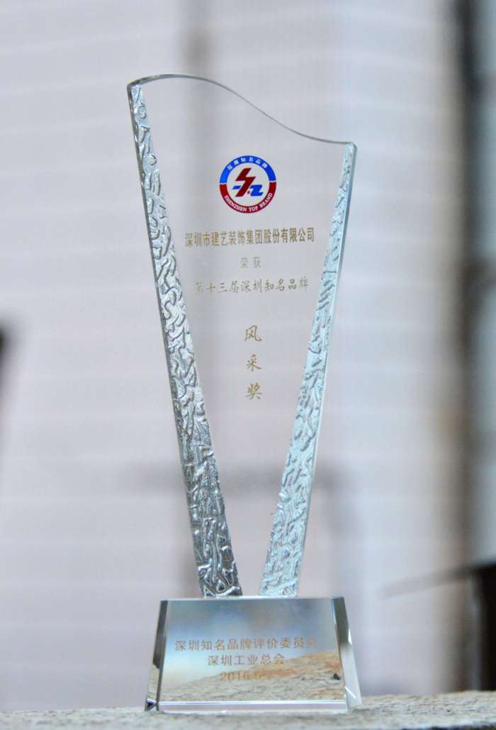 建艺集团荣获的“第十三届深圳知名品牌风采奖”奖杯
