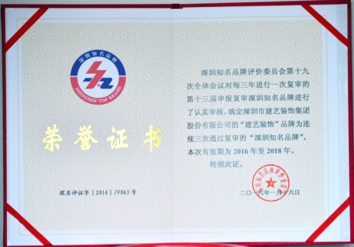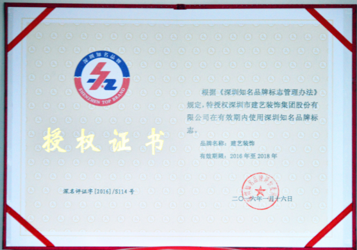 建艺集团荣获第十三届深圳知名品牌“风采奖”