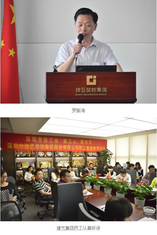 近日,深圳市总工会“新工人、新市民”职工素质教育讲座在建艺集团会议室举行,集团总部各管理中心员工参加了此次讲座。
