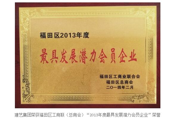 建艺集团喜获福田区工商联(总商会)“2013年度最具发展潜力会员企业”荣誉