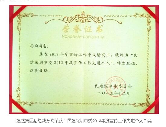 集团副总裁孙昀荣获“民建深圳市委2013年度宣传工作先进个人”奖