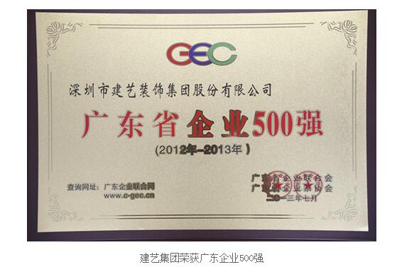 建艺集团再次稳居2013年广东省企业500强前列