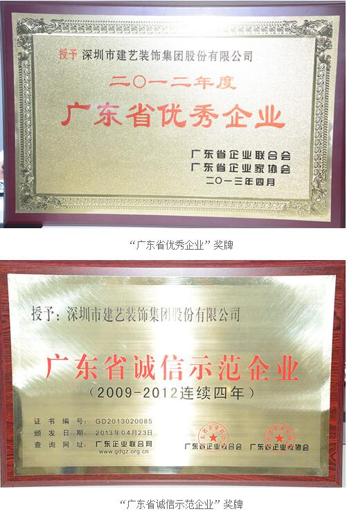 建艺集团再次荣获“广东省优秀企业”、“广东省诚信示范企业”称号