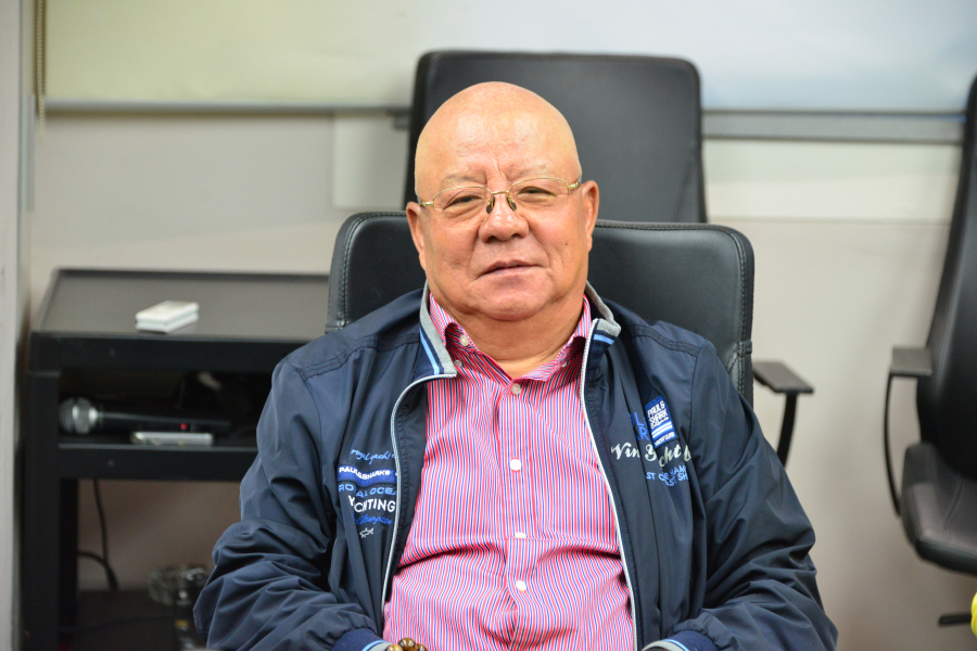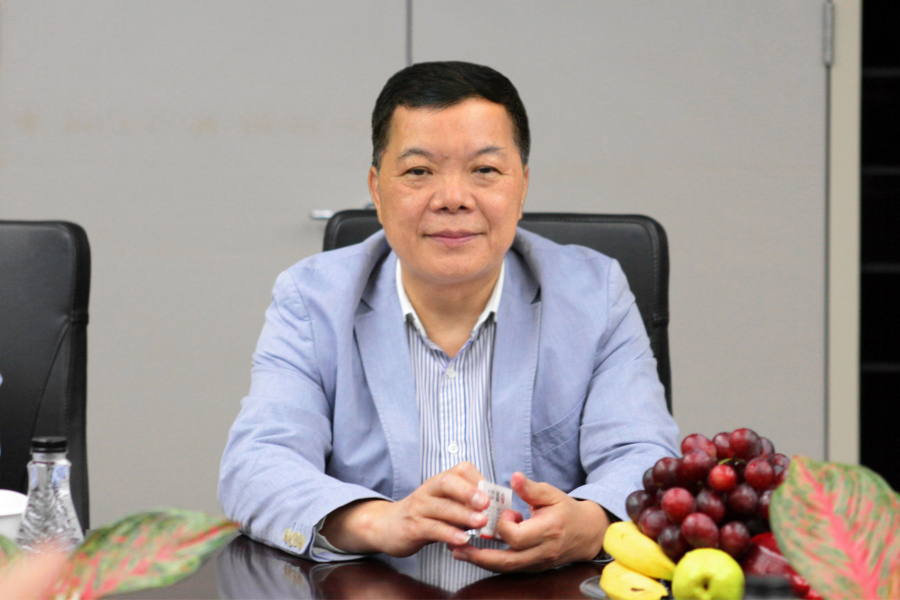 建艺集团董事长兼总裁刘海云在会上听取老领导讲话