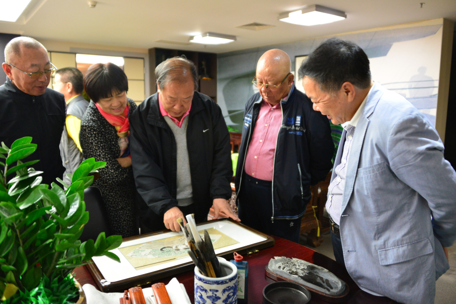老领导们在刘海云董事长办公室交流书画鉴赏心得
