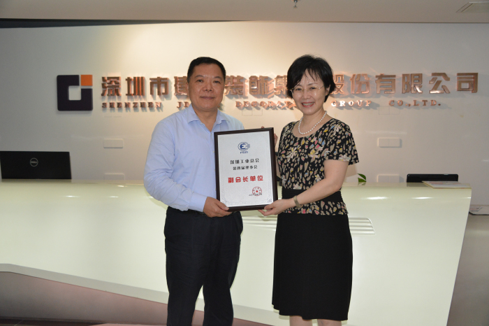 7月14日上午,深圳工业总会执行主席王肇文、秘书长吴沂烛一行莅临建艺集团,集团董事长刘海云等高管热烈欢迎王主席等人的到访,并在会议室同王主席一行进行了亲切交谈。期间,王主席及吴秘书长还分别向刘海云董事长颁发了“深圳工业总会第四届理事会副会长”荣誉证书及“深圳工业总会第四届理事会副会长单位”荣誉奖牌。建艺集团副总裁刘庆云、副总裁兼董事会秘书高仲华、副总裁赵纣瑜、监事会主席陈景辉等高管共同出席了会议。