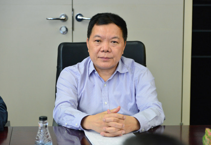 建艺集团董事长兼总裁刘海云听取技术讲解
