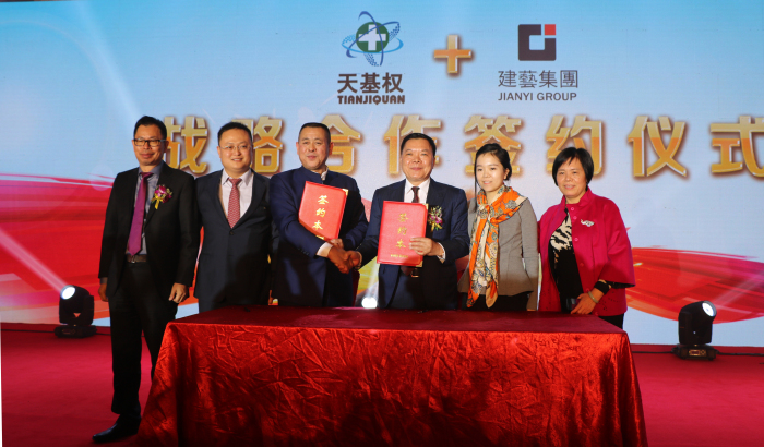 作为国家高新技术企业,经过15年奋斗,“天基权”现已拥有品牌、技术、渠道、人才等核心优势,发挥在心脑血管及亚健康领域的专长,成为中国健康产业诚信经营的标杆和具有影响力的品牌。在建艺集团实施多元化发展战略,天基权集团实施“天基权+”战略和启动上市计划的历史节点上,建艺集团董事长兼总裁刘海云高瞻远瞩,以卓越的战略眼光,落子健康产业,形成同“天基权”的双雄结盟格局。两家企业的优势高度互补,合作双赢:“建艺”依托“天基权”在健康产业的行业领先优势,入股“天基权”,将为建艺集团打造出新的增长极;依托建艺集团的雄厚资源和资本运作优势,“天基权”将如虎添翼,加快资本上市、构建大健康产业格局、打造中国健康产业的龙头企业进程。
