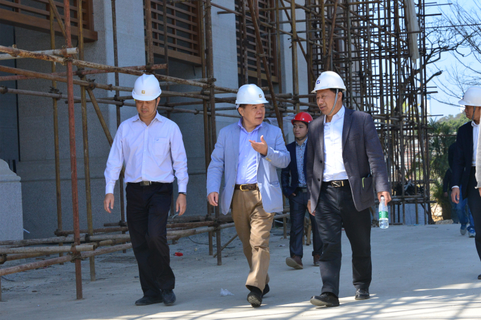 2月16日上午,建艺集团董事长兼总裁刘海云亲自率领集团董事、副总裁颜如珍,总工程师田力,副董事长刘珊,监事会主席陈景辉,设计研究院院长郭杰,财务总监温良茂,成控评估中心总监涂国发,工程总监涂俊峰,总裁助理颜健昌,副总工程师张伟等高管,驱车来到深圳佳兆业金沙湾万豪度假酒店项目实地考察。建艺集团工程管理中心工程三部总经理李卫锋、金沙湾项目现场负责人吕忠新以及工程管理中心钟树宏、廖嘉维、樊华等热情迎接刘董一行并陪同考察。