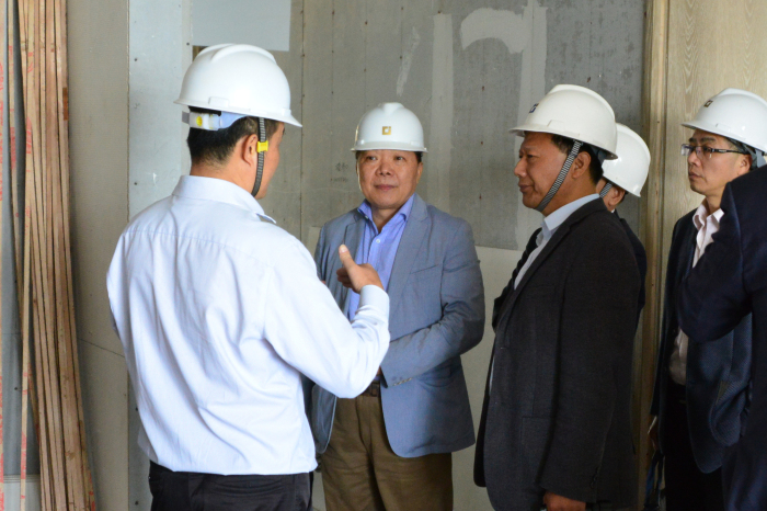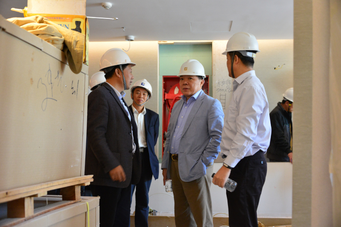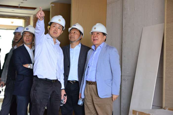 在现场,刘海云董事长一行详细了解了项目整体施工情况,并对客房卧室、卫生间、通道等区域的实际装修进展情况进行了仔细考察。刘董在考察中要求项目相关人员要充分发扬建艺人一贯的严谨高效作风,尤其要做好细节把控工作,务必确保施工品质万无一失,同时总工办相关领导在节点前务必做好监督指导工作,对有问题的地方要及时会同项目人员在施工现场就地处理,上下齐心,确保工程进度及质量。
