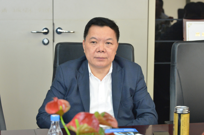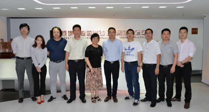 建艺集团董事长兼总裁刘海云听取皓峰通讯毛孝鹍总经理介绍