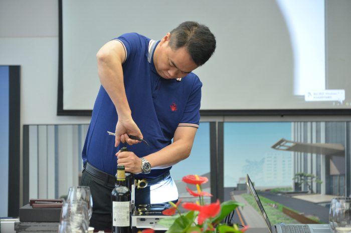 培训中,葡萄酒专业讲师张老师通过系统的讲解,从葡萄酒的历史起源、葡萄酒的种类、葡萄酒的酿造过程、各种类葡萄酒的起源地及特点、世界著名葡萄酒酒庄历史及分类、葡萄酒与其他红酒类的对比及区别以及餐桌上葡萄酒搭配等专业知识入手,为与会领导及员工带来了一场精彩纷呈的酒文化课程。此外,张老师还在现场传授了正确的开酒方法、倒酒的姿势、品酒注意事项以及通过观察酒的颜色辨别酒的时间等技能知识。通过现场实际演练,增强了员工们的实操性,并有效深化了学习效果。