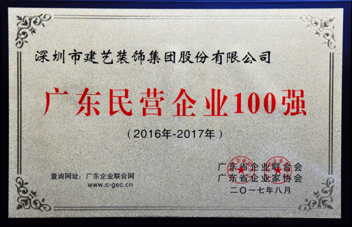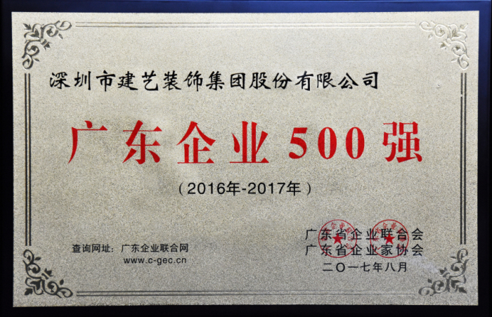 在入选的深圳企业阵营中,作为建筑装饰行业首屈一指的标杆企业,建艺集团自从成功登陆资本市场加快多元化发展步伐以来,以高速稳健的发展状态昂首前行,荣获国家高新技术企业认证,并蝉联广东省优秀企业、广东省诚信示范企业、中国建筑装饰行业百强企业前十名等。本次蝉联“广东企业500强”并荣获“广东民营企业100强”,一方面证明建艺集团的发展成绩获得了各方肯定,企业综合实力继续稳健增强;另一方面,也表现了建艺集团成功上市以来,在刘海云董事长的有力领导下,企业品牌信誉度及影响力得到了极大提升,在业界乃至全省企业界的良好口碑得到了更充分的认可,企业发展速度可谓是有目共睹。