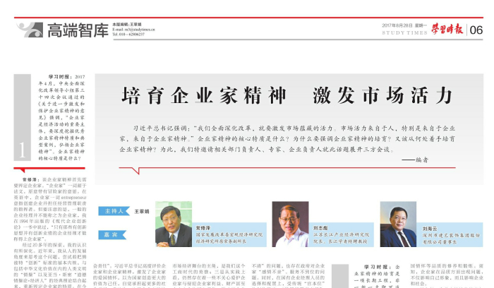 转载中央党校《学习时报》:培育企业家精神,激发市场活力