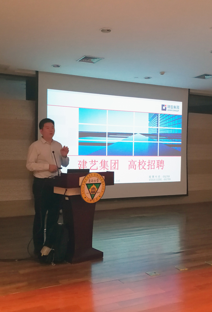 10日18:00-21:00,我司首先在东南大学九龙湖校区大学生活动中心一楼圆形报告厅举办了“建艺集团南京站校招宣讲会”。宣讲会不仅吸引了东南大学本校的材料工程、土木工程、会计学、法学、管理学等各学科的本科及硕士研究生来到现场,而且还有多名南京航空航天大学和南京理工大学的学子慕名而来,现场气氛非常热烈。