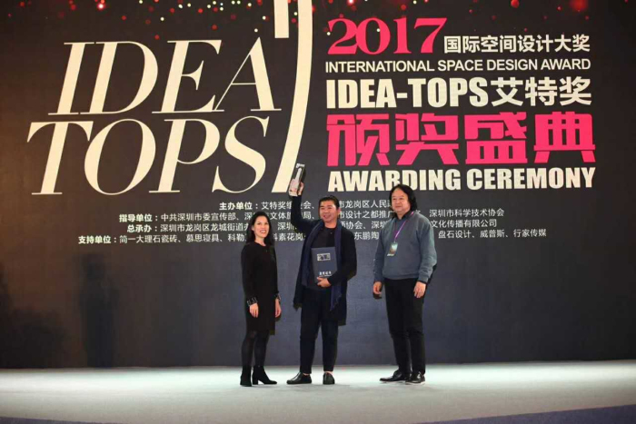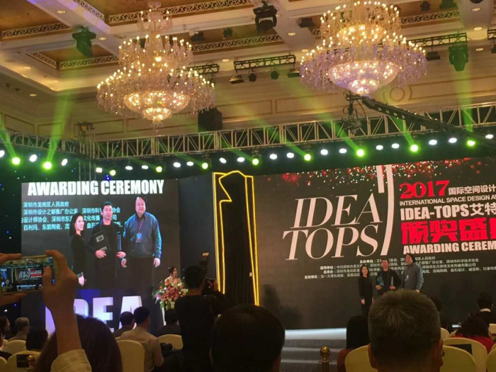 12月6日,被誉为“设计界标杆”的2017第八届国际空间设计大奖——IDEA-TOPS艾特奖颁奖盛典在“设计之都”深圳盛大举行。来自英国、美国、法国、德国、意大利、希腊、西班牙等全球40个国家和地区的近1500位杰出设计师、企业家、30个省市行业协会负责人莅临盛会,共襄盛典。