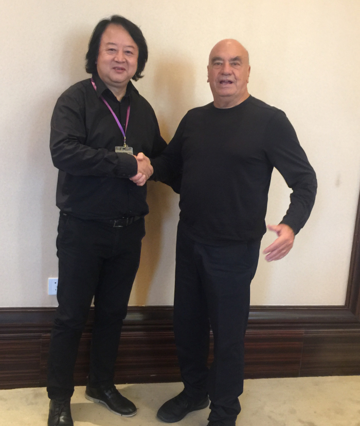郭杰院长与意大利设计大师、深圳机场T3航站楼设计师、法国总统“荣耀勋章”获得者Massimiliano Fuksas(右)合影