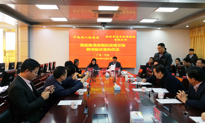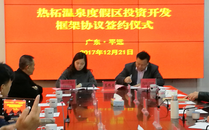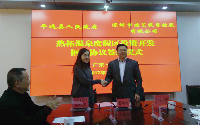 12月21日上午,广东省平远县与深圳市建艺投资控股有限公司成功举行签约仪式,双方就热柘温泉度假区投资开发项目签署了框架协议。