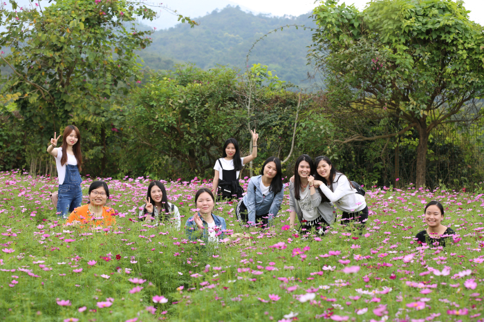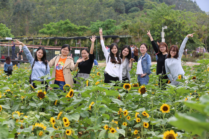 还没从冰雪世界中回过神来,女员工们便进入了第二站:游览“那里花开”主题公园。该公园位于惠州市博罗县罗浮山下浪村,背依国家5A级风景区——罗浮山风景名胜区。园区投资过亿元,一期占地约500亩,充分利用罗浮山的一山一水,一草一木,历经两年将第一期精心打造为集花卉观赏、休闲观光、科普、有机蔬菜采摘、娱乐等为一体的多功能生态主题公园。