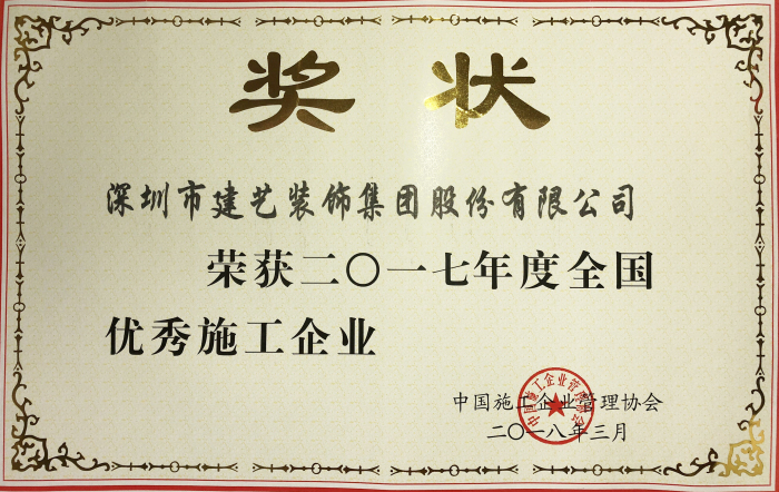 “全国优秀施工企业”是全国建筑行业评选的企业综合类最高荣誉。此次“双优”的获奖,是对建艺集团的肯定,也是企业综合实力的体现。多年来,建艺集团一直秉承“以德为先,诚信为本,构筑精品为目标”的企业宗旨,利用对专业的理解,不断加强企业管理,提升工程质量,打造卓越的建艺装饰品牌,不断推动中国建筑装饰行业蓬勃发展。