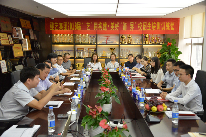 在迎新会 开始前,副总裁赵纣瑜向校招生介绍了出席本次迎新会的集团领导。然后,通过学生的自我介绍,集团领导也加深了对各位学生的了解,并表示:大家来到深圳,进入建艺集团,要把自己学到的专业知识充分发挥出来,尽快融入集团的企业文化。刘海云董事长首先代表建艺集团欢迎各位毕业生来到建艺集团,在听完每位毕业生对自己的介绍后,刘董发表了重要讲话,他指出:建艺集团连续三年从全国高等院校选拨人才。今天又一批毕业的优秀学子离开学校来到建艺,心里非常高兴。他希望大家尽快进入角色,多层次了解建艺集团,融入企业文化,发挥自身才干与企业共同发展。