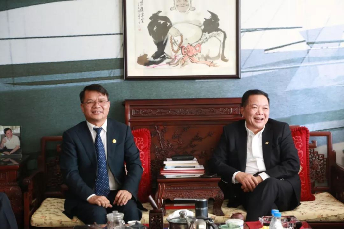 刘海云董事长与第三期轮值会长黄镜芳(左)热情交流