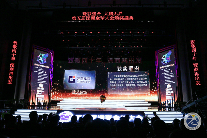 致敬四十年,深商再出发。1月14日,由深商总会、深圳市商业联合会主办的第五届深商全球大会开幕式暨颁奖典礼在保利剧院隆重举行。深圳市委常委、统战部部长林洁,市政府常务副市长刘庆生,市人大常委会常务副主任罗莉等领导以及深商企业家代表王石、李东生、王传福、马蔚华等1500多名来自全国各地的商界代表共襄盛举。建艺集团、建艺控股董事会主席刘海云出席大会并登台领取了“建艺集团——深圳老字号”荣誉奖牌。