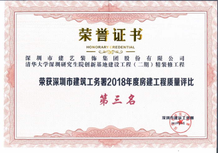 2018年度深圳市建筑工务署工程质量评比第三名(建艺集团)