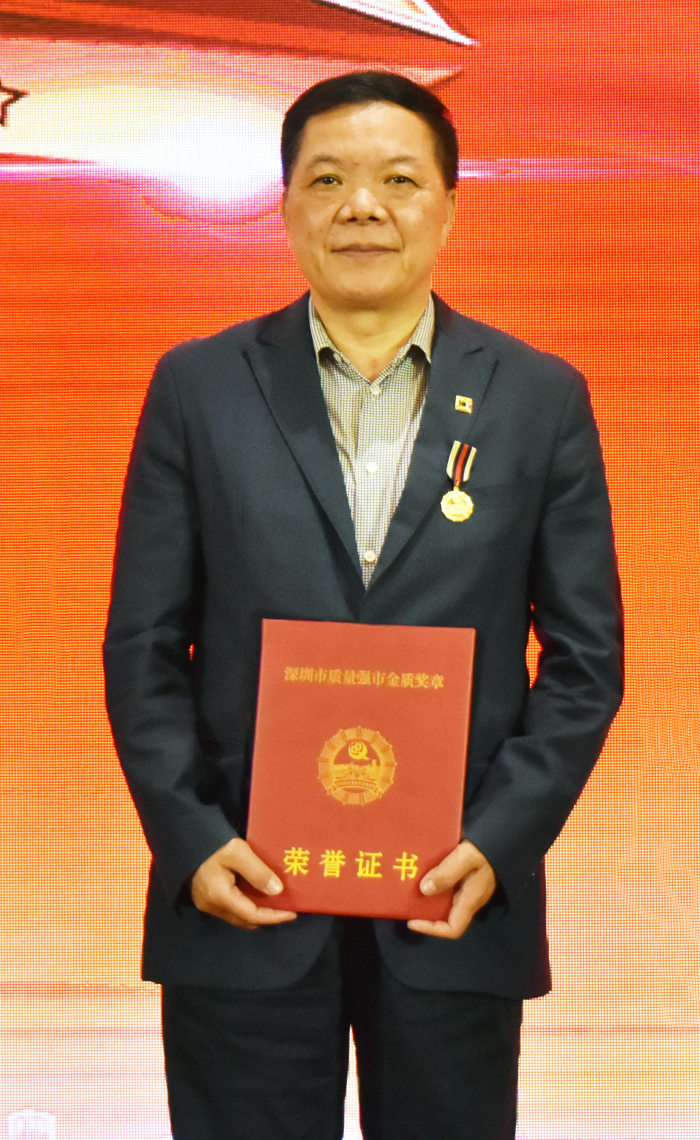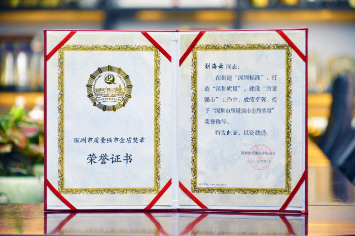 深圳市最高个人质量荣誉——“深圳市质量强市金质奖章”证书