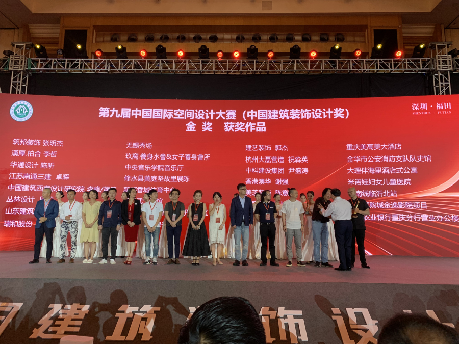 第九届中国国际空间设计大赛自2018年6月启动以来,得到了各大设计企业和设计师以及各地方行业协会的鼎力支持。大赛的作品分为酒店、餐饮、商业、文化、办公等13个类别,共计征集作品6580套,本次评审工作采用网络与现场相结合的评审模式,力保大赛的公平公正,经过初评、复评、终评,于6月22日下午揭晓最终获奖名单并成功举行颁奖典礼。建艺集团设计研究院郭杰院长受邀出席颁奖典礼,其设计作品《重庆美高美大酒店》荣获第九届中国国际空间设计大赛中国建筑装饰设计奖金奖,为建艺集团装饰设计荣誉簿再添新辉!