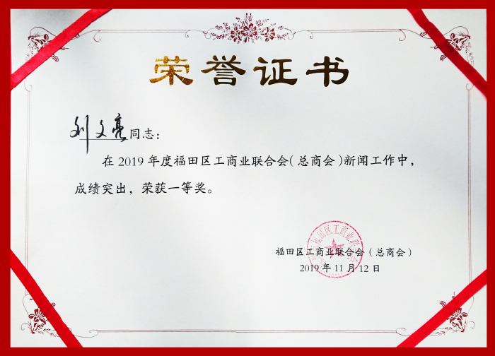 培训后,区工商联领导对2019年度福田区工商联(总商会)优秀信息员进行表彰并颁发了荣誉证书。建艺集团荣获福田区工商联(总商会)新闻工作第一名,这是建艺集团连续第四年蝉联第一。