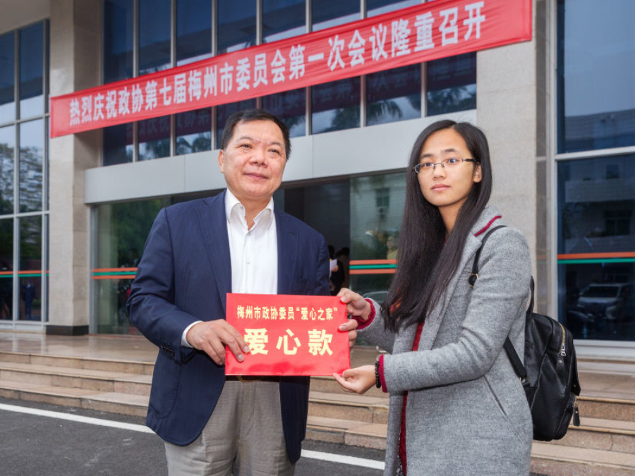 刘海云代表梅州市“政协委员爱心之家”献爱心