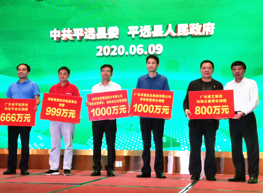刘海云在平远县发展教育基金会成立暨捐赠仪式上捐赠800万元