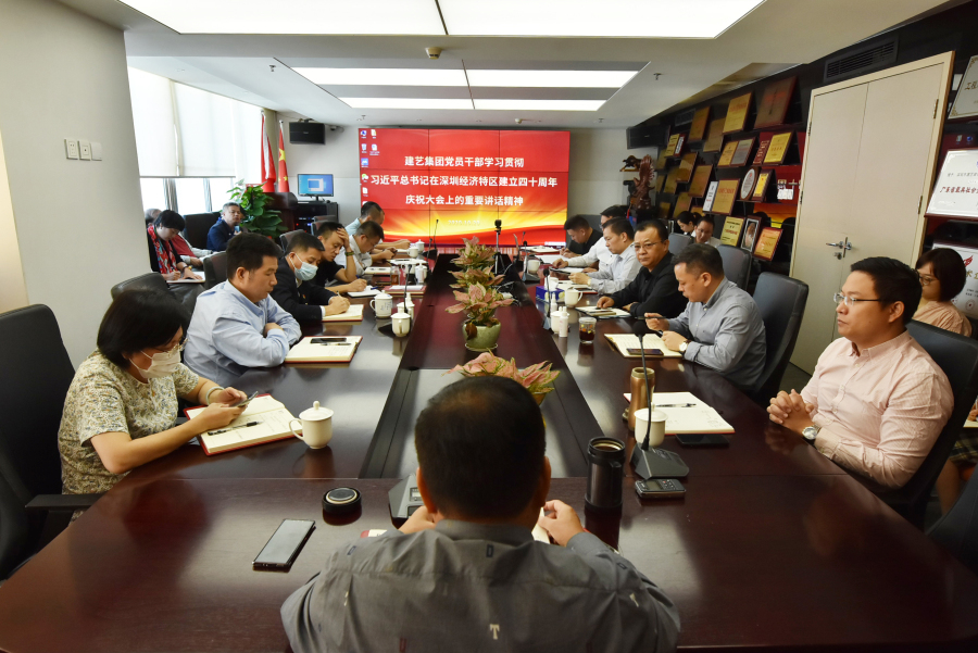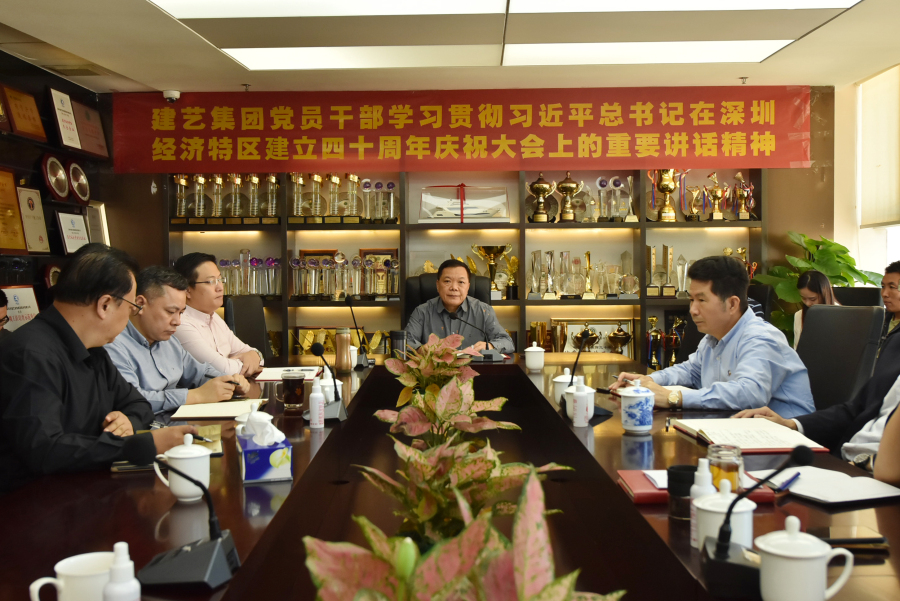 刘海云在学习会上讲到:“今天我们集中学习总书记讲话精神,就是了解历史,回顾历史,展望未来。深圳是一座成就梦想的城市,深圳精神就是:发展才是硬道理,敢闯敢干的创新精神,来了就是深圳人的开放、包容心胸,越是困难时期越有勇立潮头的勇气。特区建立40年,我到深圳33年并在四个单位工作——免税、洪涛、深装总、建艺。建艺成立已有26年光阴,从我接手时的“三无公司”到现在的A股上市集团企业,之所以能有今天的成果,就是得益于脚下这方改革热土,让种子生根、成长、成材。“深圳经验”告诉我们:只要敢想,有能力去推动,就有成功的可能。”