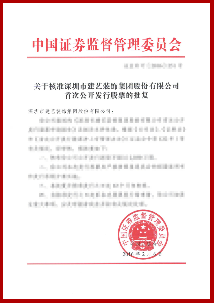 2015年建艺集团上市获得批准通过
