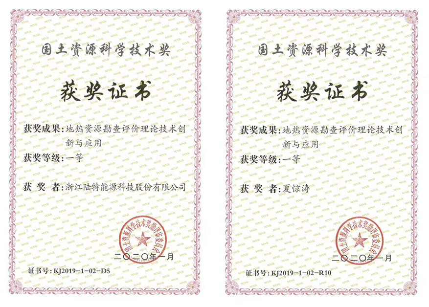 陆特能源创始人夏惊涛先生,是国家地热能标准委员会、国际地源热泵协会(IGSHPA)中国可再生能源学会会员,参与了中国地热能行业主要标准规范以及国家相关政策的编制和重要决策的讨论。先后获得“中国建筑节能减排十大突出贡献人物”、“中国低碳时代领军人物”、“中国财经峰会最具影响力人物”、“浙江优秀创业创新人物”、“中小企业协会先进个人”等荣誉。由陆特能源、夏惊涛先生参与完成的“地热资源勘查评价理论技术创新与应用”,荣获“2019年度国土资源科学技术奖一等奖”。