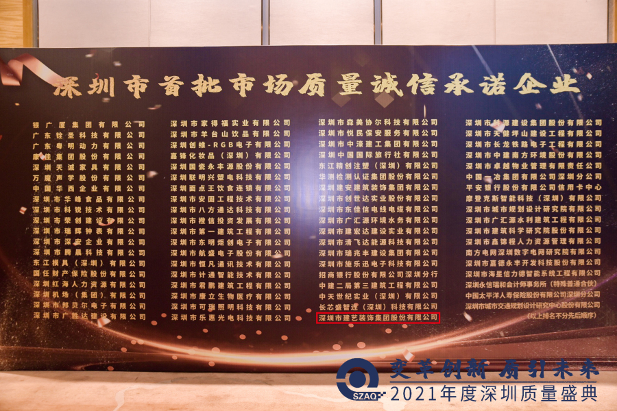 建艺集团质量诚信建设部分成果:深圳市质量强市骨干企业