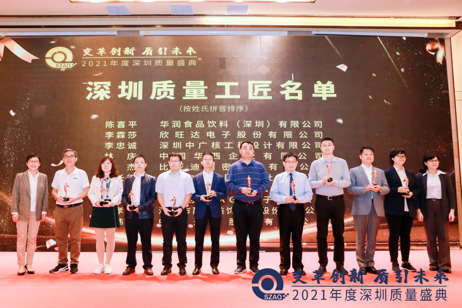 日前,由深圳市质量协会主办的“2021年度深圳质量盛典”(简称“质量盛典”)在南山区隆重举行。本届质量盛典以“变革创新,质引未来”为主题,现场颁发了“深圳质量工匠”等奖项。