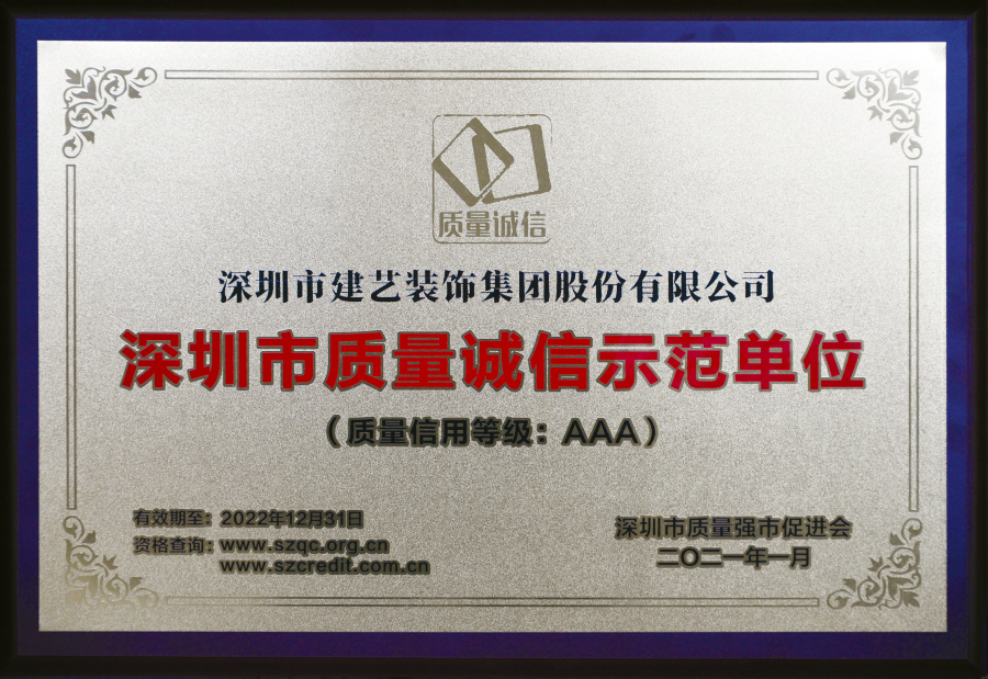 建艺集团质量诚信建设部分成果:深圳市质量诚信示范单位