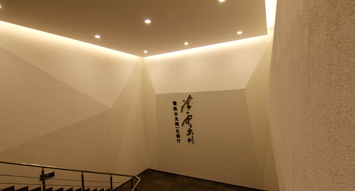 步入纪念馆,迎面树立着陈云同志的铜像,面带微笑巍然而立。背景墙是浓郁中国风的水墨山水画。