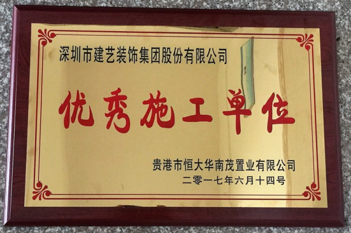 贵港市恒大华南茂置业有限公司授予建艺集团荣誉奖牌