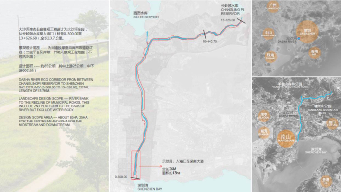 大沙河生态长廊是深圳市“十二五”规划重大项目“大沙河创新走廊”建设的重要组成部分。负责设计的深圳市国家级科技领军人才、北林苑景观及建筑规划设计院杨海军教授表示,它是联通羊台山、塘朗山森林生态系统与深圳湾海湾生态系统的生态廊道,是深圳“四带六廊”基本生态格局中山脉支撑带和滨海生态带之间的重要廊道,在深圳自然生态网络格局中具有重要意义。