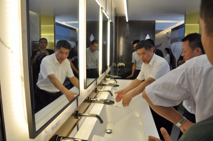 他要求其他承接各区“厕所革命”的相关企业都要学习该项目的设计理念与设计亮点,学习建艺的“匠心”,并提出希望全市公厕室内设计都能够以“建艺设计标准”作为执行参照,做到细致、美观、科技、实用!