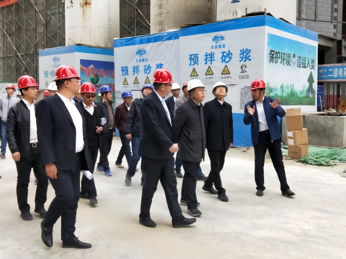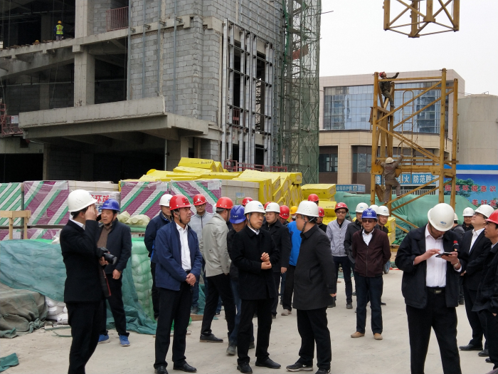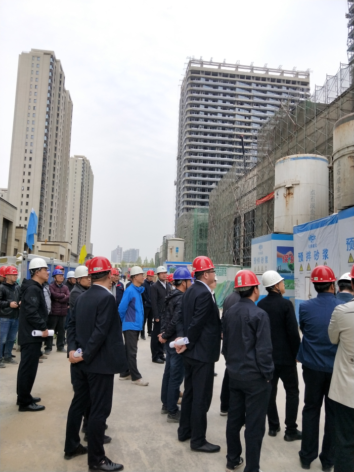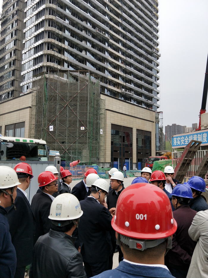 4月8日下午,中冶置业集团副总经理丁志雄一行领导对建艺集团石家庄中冶城市商业广场项目进行现场考察。
